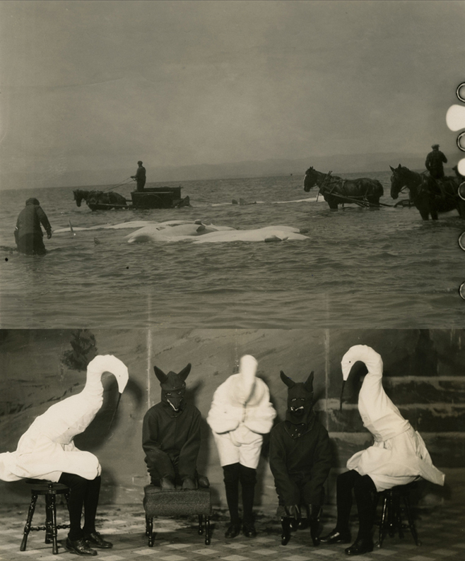 In many animist cultures, whales represent an archive of the world. In this perspective, Maryse Goudreau explores a fascinating beluga narrative, and juxtaposes it with student-written plays. Here, she playfully reconstructs a historical tale made up of gaps and intrigue in a spirit of Dadaist absurdity.